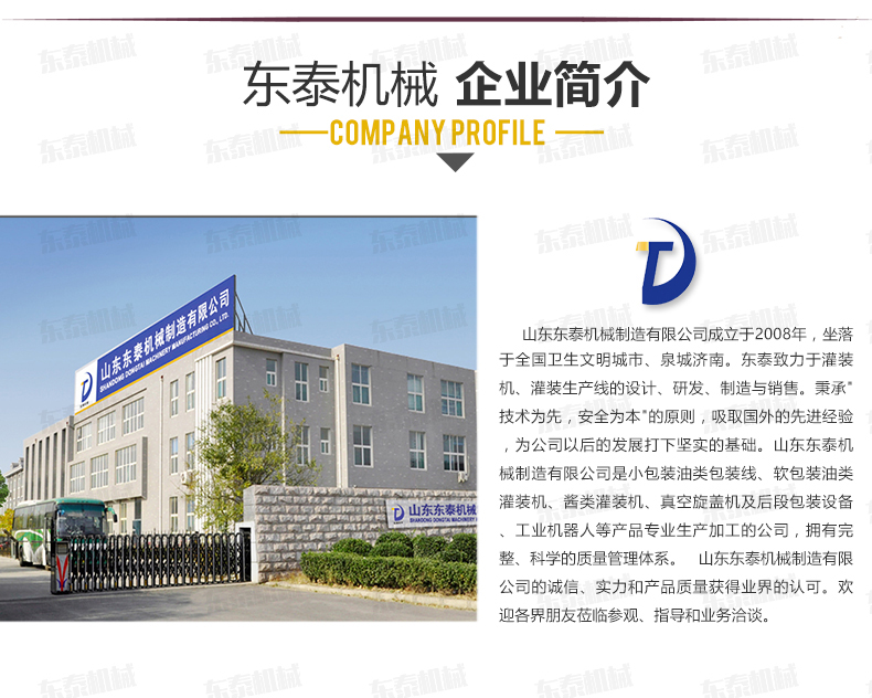沈陽東泰機械隸屬于山東東泰機械,主營粉劑包裝機、醬類醬料包裝機、食用油灌裝機、食品包裝機、包裝流水線、灌裝生產線等產品,并且為東北地區客戶提供售后維修服務...