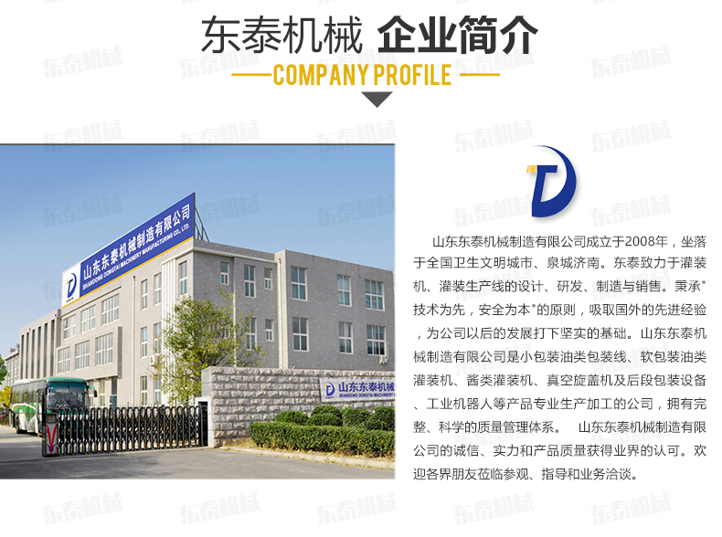 沈陽東泰機械隸屬于山東東泰機械,主營粉劑包裝機、醬類醬料包裝機、食用油灌裝機、食品包裝機、包裝流水線、灌裝生產線等產品,并且為東北地區客戶提供售后維修服務...
