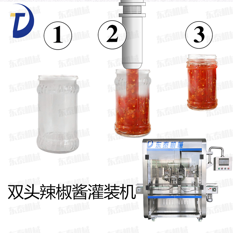 辣椒醬灌裝機采用活塞式灌裝原理,適用于調味品中帶顆粒并且濃度較大的辣椒醬、豆瓣醬、花生醬、香菇醬、果醬、牛油火鍋底料、紅油火鍋底料、蝦醬等較為粘稠醬類的灌裝。